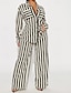 Γυναικεία Μοντέρνα Καθημερινά Σετ δύο τεμαχίων Σετ παντελονιών Μακρυμάνικο Κολάρο Πουκαμίσου Ριγέ Στάμπα Γραφείο Μαύρο Θαλασσί Γκρίζο Καλοκαίρι Κανονικό