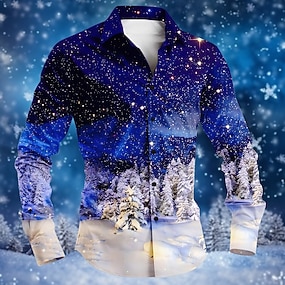 Χριστούγεννα Ανδρικά Δέντρο Χιονονιφάδα Πουκάμισο Πουκάμισο με κουμπιά Μακρυμάνικο Μόδα Casual Βραδινό Ρούχα για Πάρτυ Καθημερινά Φθινόπωρο Χειμώνας Ανοιξη καλοκαίρι Κολάρο Πουκαμίσου Κουμπί επάνω 3D