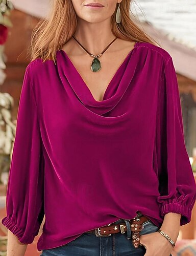 Γυναικεία Μπλούζα Συμπαγές Χρώμα Κομψό Στυλάτο Βασικό Μακρυμάνικο Ζιβάγκο Κανονικά μπλουζάκια Καθημερινά Σουρωτά Μαύρο Ρουμπίνι Βυσσινί Πράσινο του τριφυλλιού Γκρίζο Φθινόπωρο Χειμώνας