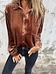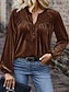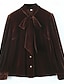 Γυναικεία Πουκάμισο Βελούδο Κομψή Φιλάρεσκος Συμπαγές Χρώμα Σκέτο Κομψό κυρίες Στυλάτο Μακρυμάνικο Λαιμός Κανονικά μπλουζάκια Δουλειά Καθημερινά Αργίες γραβάτα μπροστά Σουρωτά Κουμπιά Καφέ
