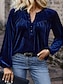 Γυναικεία Βελούδινη Μπλούζα Μονόχρωμή Κομψή Στιλάτη Βασική Μακριά Μανίκια V Neck Κανονικά Τοπ Ημέρας Κουμπιά Μπλε Καφέ Άνοιξη Φθινόπωρο Χειμώνα