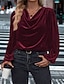 Γυναικεία Βελούδο Κομψή Φιλάρεσκος Μπλούζα Συμπαγές Χρώμα Σκέτο Κομψό κυρίες Στυλάτο Μακρυμάνικο Λαιμός Κανονικά μπλουζάκια Δουλειά Καθημερινά Αργίες Σουρωτά Ντραπέ