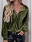Γυναικεία Πουκάμισο Βελούδο Κομψή Φιλάρεσκος Σκέτο Κομψό κυρίες Στυλάτο Μακρυμάνικο Κολάρο Πουκαμίσου Κανονικά μπλουζάκια Δουλειά Καθημερινά Αργίες Τσέπη Κουμπιά Ντραπέ Κρασί Πράσινο Χακί Βυσσινί Καφέ