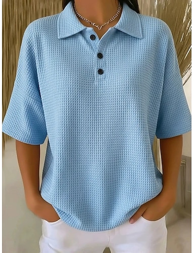 Γυναικείο Waffle μπλούζα tunic κουμπιά μονόχρωμο απλό vintage στυλάτο κλασικό κοντομάνικο καμπυλωτό κανονικά μπλουζάκια καθημερινά λευκό ροζ ανοιχτό μπλε καλοκαίρι άνοιξη