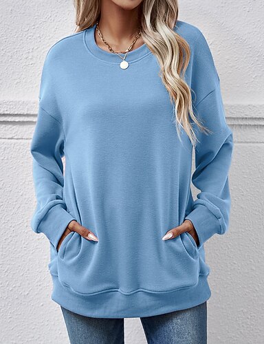 Γυναικεία Φούτερ πουλόβερ Σκέτο Κομψό στυλ street Καθημερινό Μακρυμάνικο Πέτο Κανονικά μπλουζάκια Δρόμος Καθημερινή Ένδυση Θαλασσί σκούρο κόκκινο Ανθισμένο Ροζ Ουρανί Ροδοκόκκινο Φθινόπωρο Χειμώνας