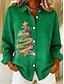 Χριστούγεννα Γυναικεία Μπλούζα Γραφική Χριστουγεννιάτικο δέντρο Βίντατζ Τροπικό Στυλάτο Μακρυμάνικο Κολάρο Πουκαμίσου Κανονικά μπλουζάκια Δουλειά Καθημερινά Εξόδου Κουμπιά Στάμπα