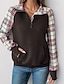 Γυναικεία Φούτερ πουλόβερ Καρό Μοντέρνα Καθημερινό Μακρυμάνικο Πέτο Κανονικά μπλουζάκια Δρόμος Καθημερινή Ένδυση Causal Κουρελού Τσέπη Μισό φερμουάρ Καφέ Φθινόπωρο Χειμώνας