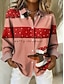 Χριστούγεννα Γυναικεία Μπλούζα Γραφική Σκύλος Βίντατζ Τροπικό Στυλάτο Μακρυμάνικο Κολάρο Πουκαμίσου Κανονικά μπλουζάκια Δουλειά Καθημερινά Εξόδου Κουμπιά Στάμπα Ρουμπίνι Χακί Μπεζ Φθινόπωρο Χειμώνας