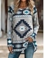 Γυναικεία Μπλουζάκι Γραφική Γεωμετρία Βίντατζ Στυλάτο Καθημερινό Μακρυμάνικο Στρογγυλή Ψηλή Λαιμόκοψη Μακριές μπλούζες Καθημερινά Στάμπα Θαλασσί Βυσσινί Πράσινο του τριφυλλιού Φθινόπωρο Χειμώνας