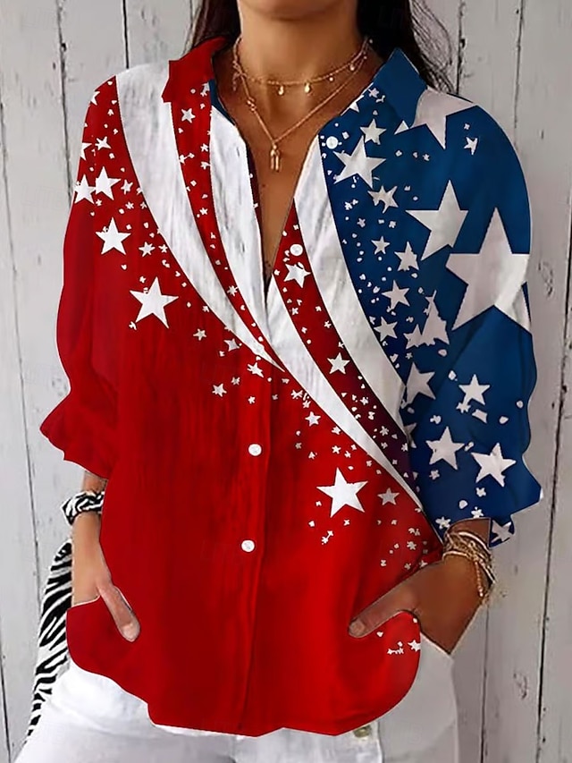 Ύφασμα:Πολυεστέρας,Τύπος Μπλούζας:Πουκάμισο,Φύλο:Γυναικεία,Περίσταση:Καθημερινά,Στυλ:Καθημερινό,Βίντατζ,Στυλάτο,Κατηγορία:Μπλούζα,Είδος εφαρμογής:Κανονικό,Φεστιβάλ:Ημέρα Αμερικανικής Ανεξαρτησίας,Λαιμόκοψη:Κολάρο Πουκαμίσου,Μάκρος Μανικιού:Μακρυμάνικο,Φροντίδα:Πλένεται,Πλύσιμο στο πλυντήριο,Πλύσιμο στο χέρι,Υγρό και Στεγνό Καθάρισμα,Μάκρος Μπλούζας:Κανονικά μπλουζάκια,Μοτίβο:Γραφική,Σημαία,Εποχή:Καλοκαίρι,Άνοιξη,
