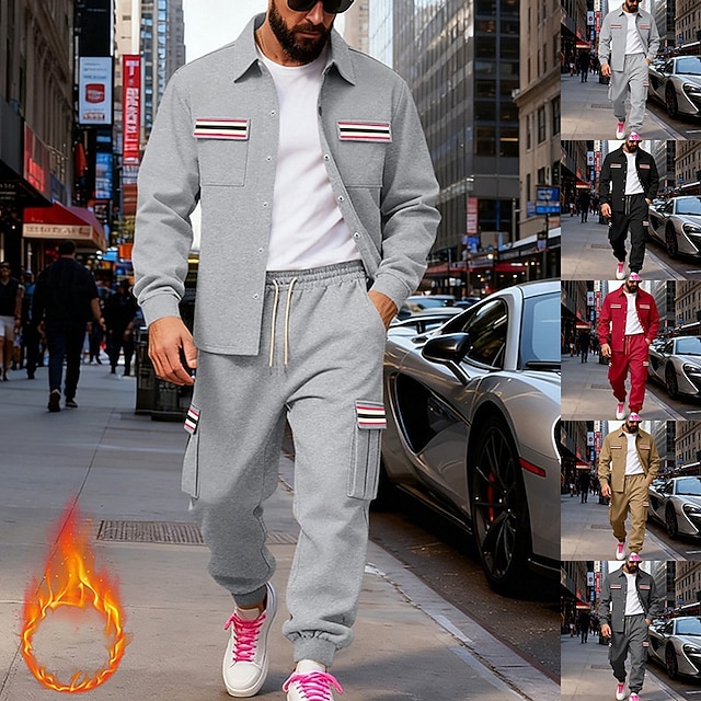 Ανδρικά Πουλόβερ Φόρμα Σετ ρούχων Jachetă Πέτο ΕΞΩΤΕΡΙΚΟΥ ΧΩΡΟΥ Καθημερινά Αθλητικά Κορδόνι Κουμπί επάνω Τσέπη Ταινία Μαύρο Ρουμπίνι Καφέ Πολυεστέρας Ρούχα Γυμναστικής Μοντέρνα Κομψό στυλ street #10157043