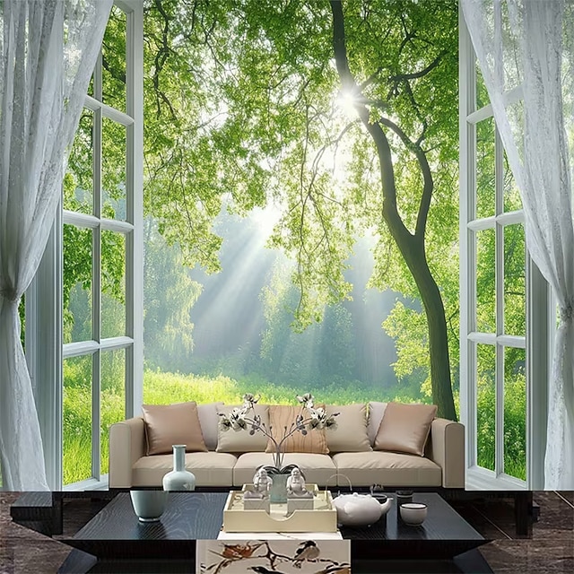 ταπισερί Σημαιάκια Κουβέρτα Ρουστίκ Παράθυρα Δέντρο Μοντέρνα 3D Υπνοδωμάτιο Σαλόνι Κοιτώνας Δωμάτιο Εφήβων Κοιτώνας Κολλεγίου Βεράντα τοίχου Διακόσμηση Σπιτιού #10209657