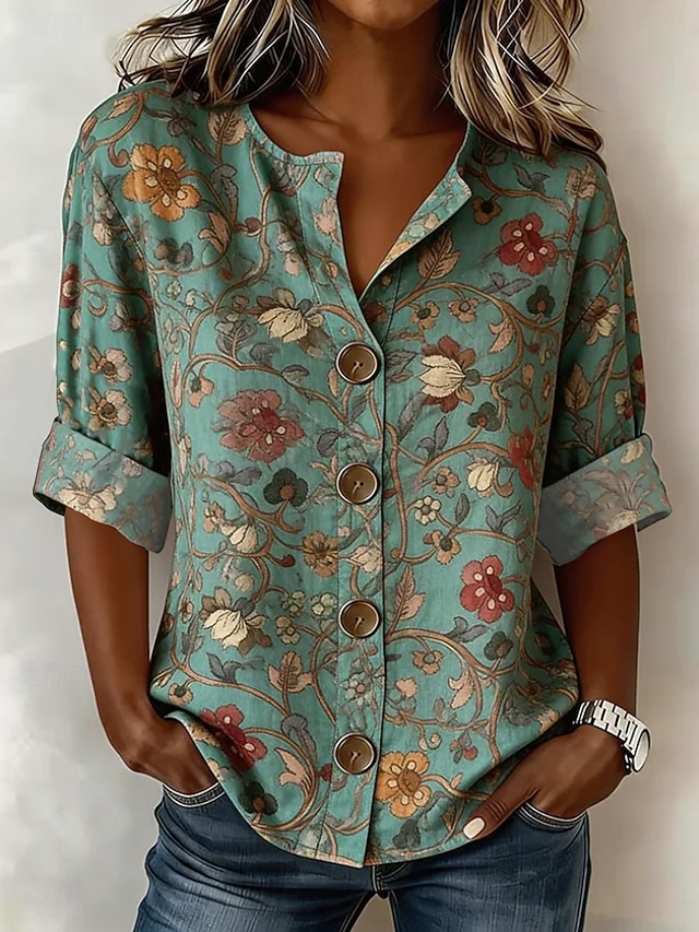 Ύφασμα:Πολυεστέρας,Τύπος Μπλούζας:Καλοκαιρινές κορυφές,Χιτώνας,Πουκάμισο,Φύλο:Γυναικεία,Σχέδιο:Κουμπιά,Περίσταση:Εξόδου,Καθημερινά,Αργίες,Στυλ:Διακοπές,Καθημερινά,Κατηγορία:Πουκάμισο,Είδος εφαρμογής:Κανονικό,Λαιμόκοψη:Λαιμόκοψη V,Μάκρος Μανικιού:Μακρυμάνικο,Ελαστικότητα:Ανελαστικό,Φροντίδα:Πλένεται,Πλύσιμο στο χέρι,Πλύσιμο στο πλυντήριο,Μάκρος Μπλούζας:Μακριές μπλούζες,Μοτίβο:Γραφική,Αφηρημένο,Γεωμετρικό,Εποχή:Άνοιξη,Καλοκαίρι,