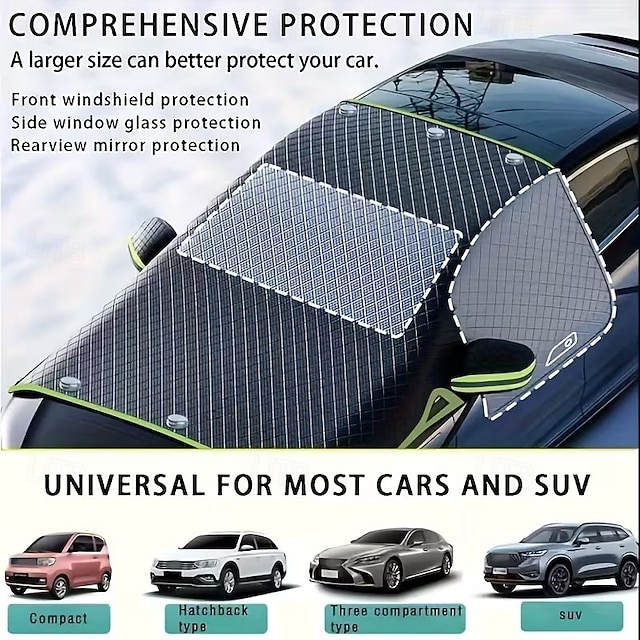 καθολικό κάλυμμα παρμπρίζ αυτοκινήτου, ανθεκτικό ύφασμα Oxford snow &Προστατευτικό πάγου με προστασία UV, εύκολο στην εγκατάσταση προστατευτικό χειμερινού παρμπρίζ για όλα τα οχήματα, αξεσουάρ #10791453