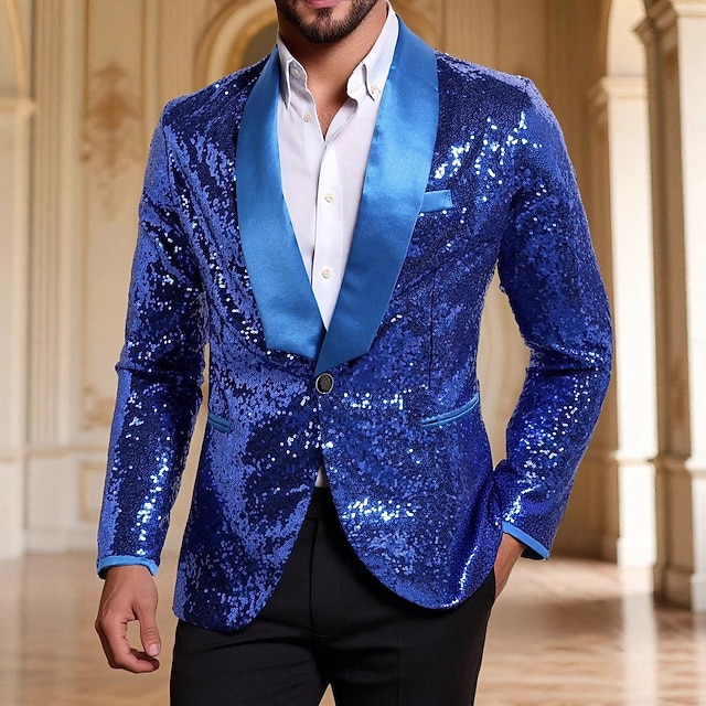 Ντίσκο Δεκαετία '80 Smoching Κοστούμια & Σακάκια Lapel Collar Blazer Μακριά Μανίκια Ντίσκο Πούλιες Πούλια Φανταχτερή Φόρεμα Ανδρικά Αποκριάτικη Στολή Απόκριες Μασκάρεμα #11116527