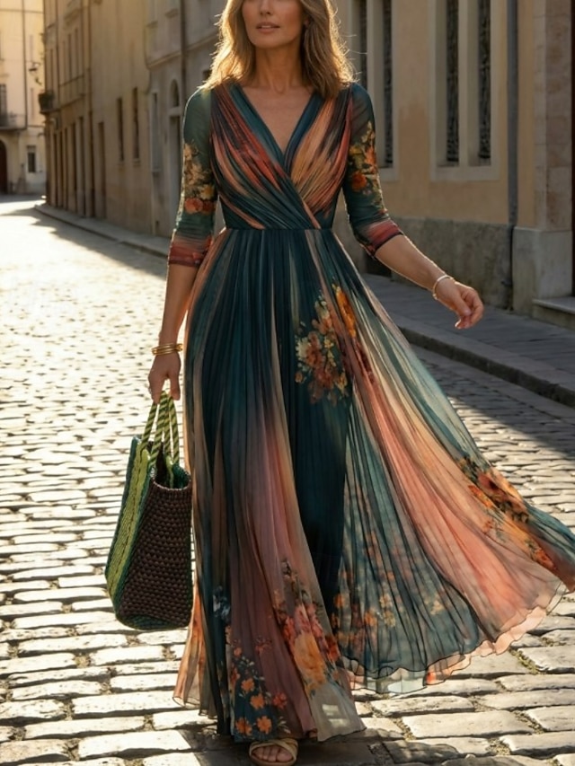 Είδη φορεμάτων:Φόρεμα Boho,Καλοκαιρινό φόρεμα,Καθημερινό φόρεμα,Floral φόρεμα,Φορέματα σιφόν,Φόρεμα ριχτό από τη μέση και κάτω,Ύφασμα:Πολυεστέρας,Φύλο:Γυναικεία,Περίσταση:Αργίες,Καθημερινά,Παραλία,Σαββατοκύριακο,Διακοπές,Σχέδιο:Στάμπα,Στυλ:Βίντατζ,Είδος εφαρμογής:Κανονικό,Τύπος Μήκος Φορέματος:Μακρύ Φόρεμα Μάξι Φόρεμα,Λαιμόκοψη:Λαιμόκοψη V,Μάκρος Μανικιού:Μακρυμάνικο,Ελαστικότητα:Μικροελαστικό,Φροντίδα:Πλύσιμο στο πλυντήριο,Μοτίβο:Φλοράλ,Εποχή:Καλοκαίρι,