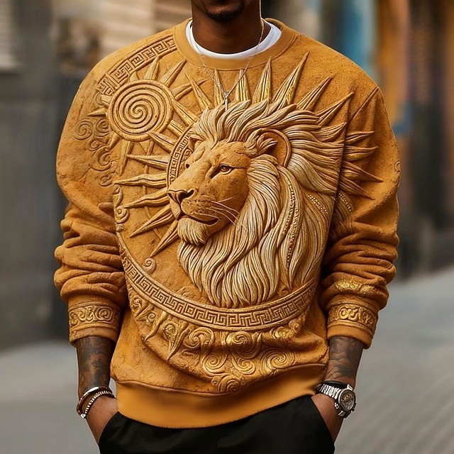 Ανδρικά 3D Εκτύπωση Λιοντάρι 3D εκτύπωση Πουλόβερ Καθημερινό 3D Μακρυμάνικο Στρογγυλή Ψηλή Λαιμόκοψη Διακοπές Πάρτι Δώρο Κίτρινο Βυσσινί Πορτοκαλί Καφέ Γκρίζο Λαιμόκοψη 3D Όλες οι εποχές Σχεδιαστής#11586245