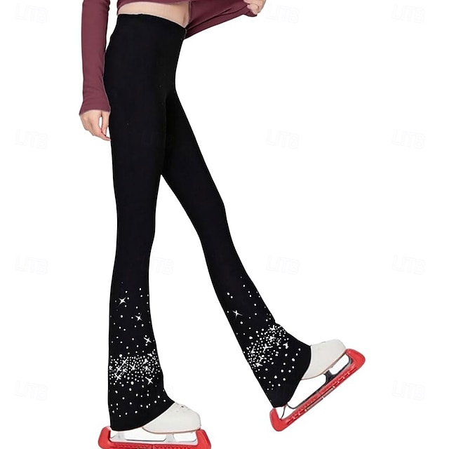 παντελόνι καλλιτεχνικού πατινάζ για κορίτσια, μαύρο ελαστικό παντελόνι προπόνησης, αγωνιστικό πατινάζ, θερμικό, ζεστό, κρύσταλλο / στρας, πατινάζ στον πάγο, καλλιτεχνικό πατινάζ #11946104