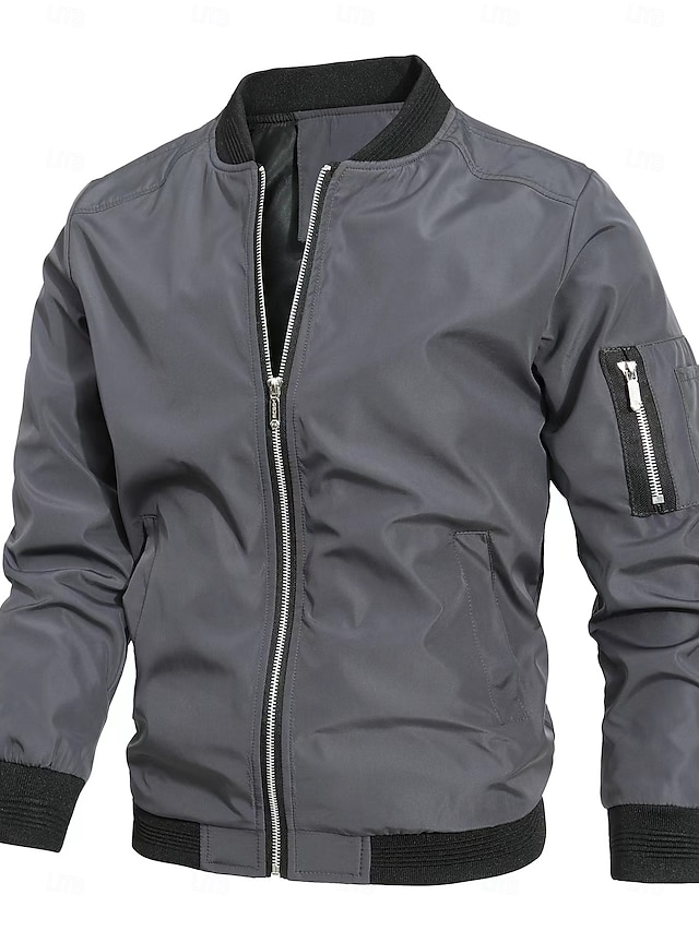 Ανδρικά Μπουφάν Bomber Μπουφάν μετάβασης Εξόδου Τσέπη Όλες οι εποχές Σκέτο Κλασσικό Όρθιος Γιακάς Κανονικό Μαύρο Βαθυγάλαζο Γκρίζο Σακάκια#11998549