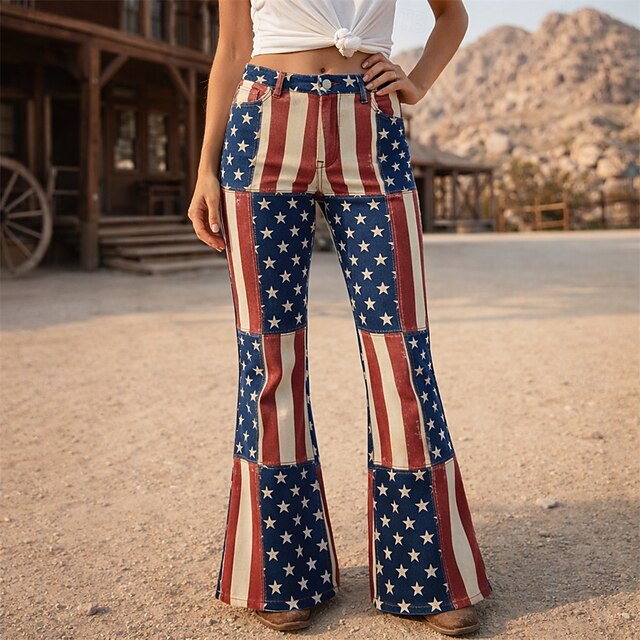 250ή Επέτειος ΗΠΑ Ρετρό / Βίντατζ Δεκαετία '70 Παντελόνια Παντελόνι με καμπάνα Χίπισσα Ντίσκο Ψηλή Μέση Φανταχτερή Φόρεμα Γυναικεία Μασκάρεμα 4η Ιουλίου Πάρτι Ημέρα της ανεξαρτησίας Ενηλίκων#12115256