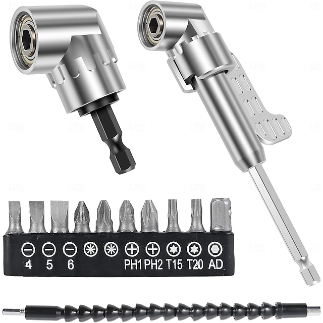 Σετ 4 προσαρμογέων τρυπανιού ορθής γωνίας 105 μοιρών, κρουστικό μηχανισμό κίνησης και μαγνητικό τρυπάνι με υποδοχή κατσαβιδιού, γωνιακό εργαλείο, πλήμνη βίδας (κοντή + μακριά) και εύκαμπτη γωνιακή #12583618