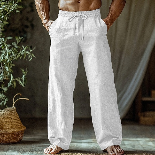 Ανδρικά Λευκά παντελόνια Παντελόνια Καλοκαίρι παντελόνι Φαρδύ παντελόνι Παντελόνι παραλίας Κορδόνι Ελαστική μέση Ισιο πόδι Σκέτο Άνεση Αναπνέει Πλήρες μήκος Causal Καθημερινά Αργίες Διακοπές Μοντέρνα #12771472