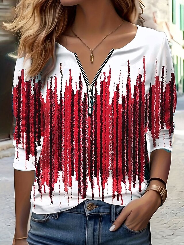 Γυναικεία Μπλουζάκι Φερμουάρ Στάμπα Ombre Γραφική Βίντατζ Μοντέρνα Στυλάτο Μακρυμάνικο Στρογγυλή Ψηλή Λαιμόκοψη Κανονικά μπλουζάκια Καθημερινά Θαλασσί Ρουμπίνι Βυσσινί Πράσινο του τριφυλλιού #12905863