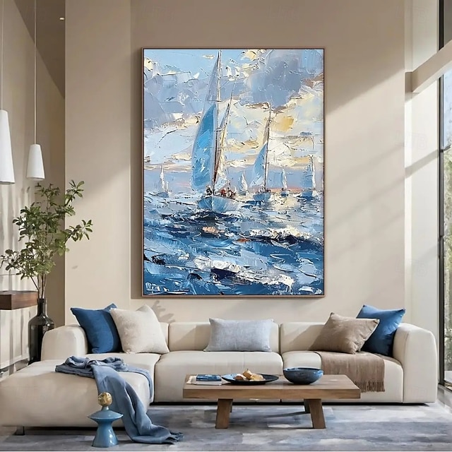 χειροποίητη ελαιογραφία σε καμβά, τέχνη τοίχου, διακόσμηση, αφηρημένο, ιστιοπλοϊκό, τοπίο, για σπίτι, καναπές, φόντο, διακόσμηση εισόδου, χολ, τεντωμένο πλαίσιο, κρεμαστός πίνακας/ρολό, χωρίς πλαίσιο, #13677029