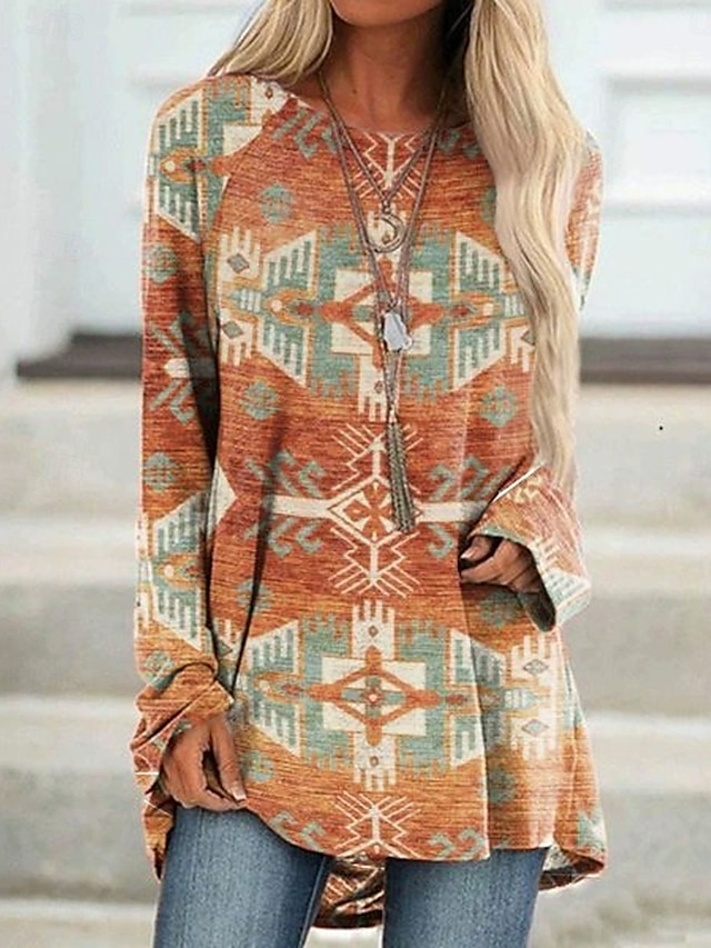 Ύφασμα:Πολυεστέρας,Τύπος Μπλούζας:Μπλουζάκι,Φύλο:Γυναικεία,Σχέδιο:Στάμπα,Περίσταση:Καθημερινά,Στυλ:Μοντέρνο,Καθημερινό,Βίντατζ,Στυλάτο,Κλασσικό,Κατηγορία:Μπλουζάκια,Είδος εφαρμογής:Κανονικό,Λαιμόκοψη:Στρογγυλή Ψηλή Λαιμόκοψη,Στρογγυλή Λαιμόκοψη,Μάκρος Μανικιού:Μακρυμάνικο,Ελαστικότητα:Μικροελαστικό,Φροντίδα:Υγρό και Στεγνό Καθάρισμα,Πλένεται,Πλύσιμο στο χέρι,Πλύσιμο στο πλυντήριο,Μάκρος Μπλούζας:Μακριές μπλούζες,Μοτίβο:Γραφική,Φυλής,Εποχή:Άνοιξη,Φθινόπωρο,
