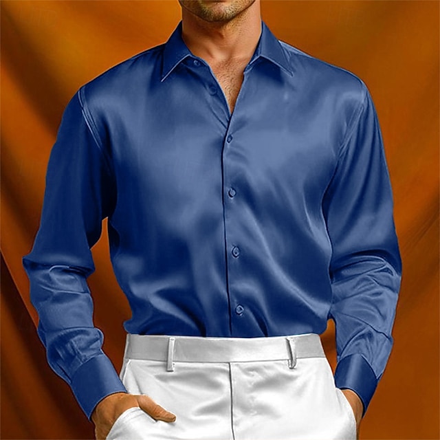 Ανδρικά Πουκάμισο Σαν μετάξι Σατέν πουκάμισο Επίσημο Πουκάμισο Casual πουκάμισο Πουκάμισο με κουμπιά Σκέτο Επίσημο Γάμου Μαύρο Κίτρινο Ρουμπίνι Βαθυγάλαζο Μακρυμάνικο Πέτο #13816834