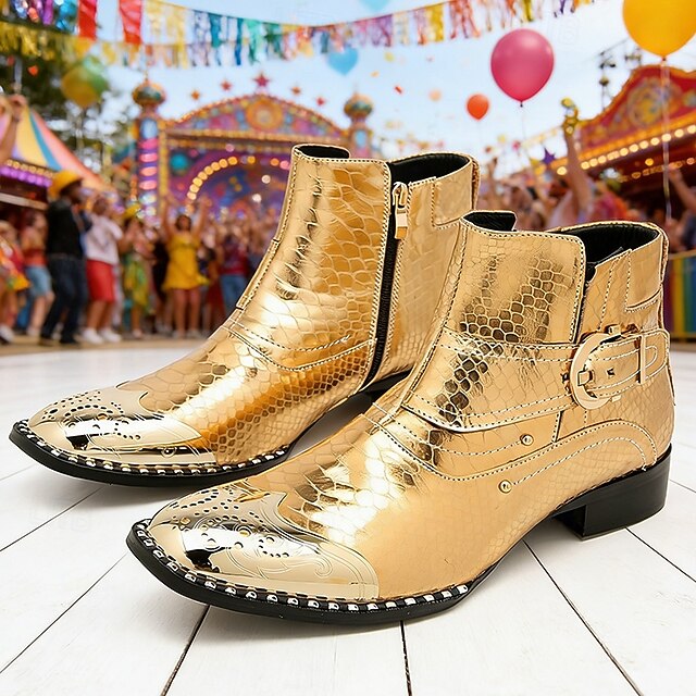 Χρυσά Μεταλλικά Μποτάκια Δυτικού Στυλ Μαρντί Γκρας για Άνδρες – Ποιότητα 100% Δέρμα Αγελάδας με Στιλβωμένα Λεπτομέρειες Ιδανικά για Καρναβάλια Εορταστικά Πάρτι και Ειδικές Περιστάσεις#14031430