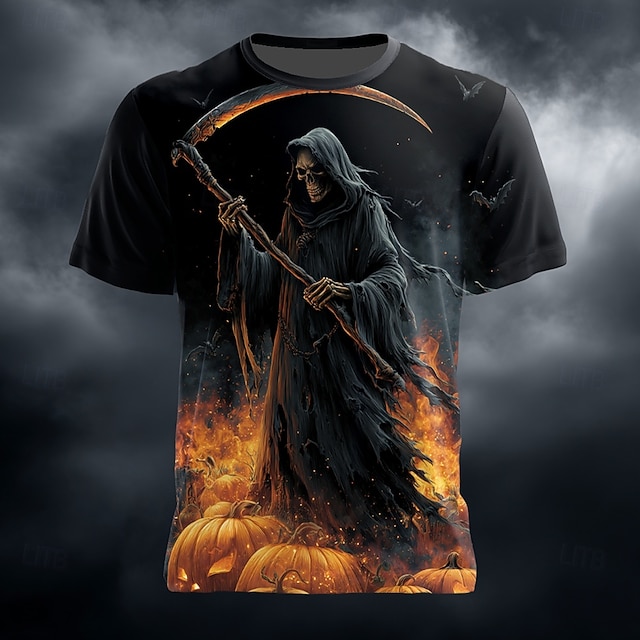 Ανδρικά 3D Εκτύπωση Ο Χάρος Θεριστής Μπλουζάκι Κοντομάνικο Κοντομάνικη μπλούζα 3D εκτύπωση Στρογγυλή Ψηλή Λαιμόκοψη Πουκάμισο Εξωγκωμένος Υψηλής Ποιότητας Φρίκης Πάρτι Δρόμος Αργίες Θαλασσί Πορτοκαλί#14202184