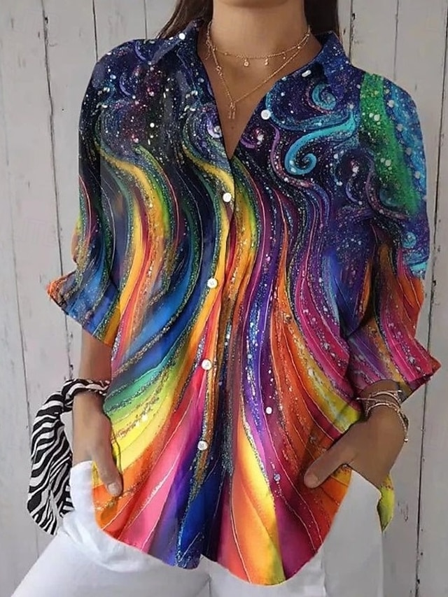 Γυναικεία Πουκάμισο Σουρωτά Ombre Γραφική Βίντατζ Στυλάτο Μακρυμάνικο Καμπάνα Κολάρο Πουκαμίσου Κανονικά μπλουζάκια Καθημερινά Δουλειά Αργίες Ουράνιο Τόξο Καλοκαίρι Άνοιξη Φθινόπωρο #14316633