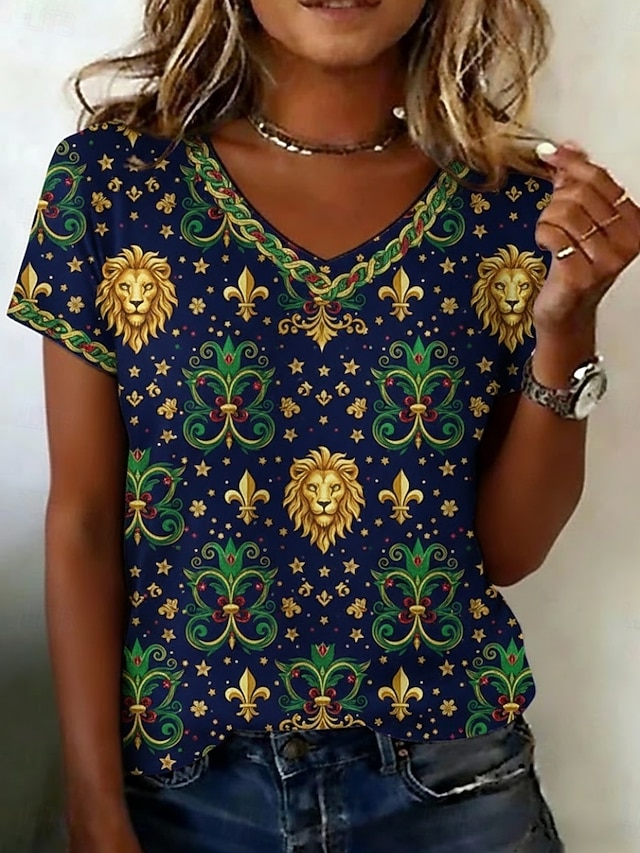 Απόκριες Γυναικεία Μπλουζάκι Στάμπα Γραφική Βίντατζ Καθημερινό Κοντομάνικο Λαιμόκοψη V Κανονικά μπλουζάκια Καθημερινά Σαββατοκύριακο Ρούχα διακοπών Βαθυγάλαζο Καλοκαίρι Άνοιξη #14373772