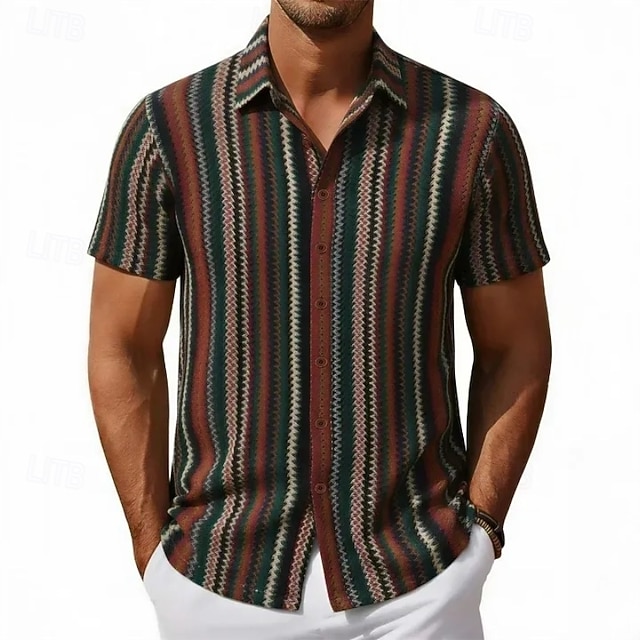 Ανδρικά Πουκάμισο Casual πουκάμισο Πουκάμισο με κουμπιά Θαλασσί Καφέ Καφέ Κοντομάνικο Ριγέ Κολάρο Πουκαμίσου Causal Καθημερινά Δαντέλα Ρούχα Μοντέρνα Etnic #14407384