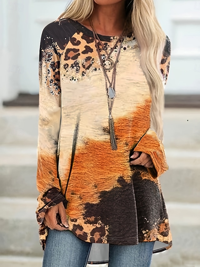 Γυναικεία Μπλουζάκι Στάμπα Γραφική Γεωμετρία Βίντατζ Στυλάτο Καθημερινό Μακρυμάνικο Στρογγυλή Ψηλή Λαιμόκοψη Μακριές μπλούζες Καθημερινά Θαλασσί Πορτοκαλί Γκρίζο Φθινόπωρο Χειμώνας #14451370