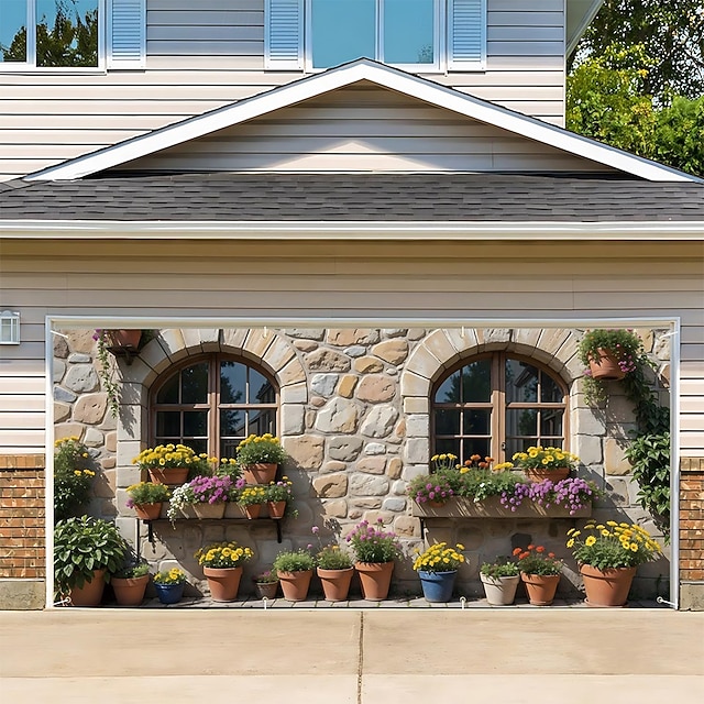 Κάλυμμα γκαραζόπορτας Μεγάλη Κρεμαστή Πέτρινος τοίχος Ρουστίκ Παράθυρα Αγροτικός 3D Πάρτι Για Υπαίθρια Χρήση Φόντα λήψης Εξώπορτα Διακοσμήσεις τοίχου πόρτα φόντο #14499709
