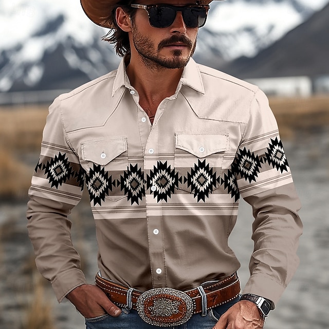 Ύφασμα:Ύφασμα που τεντώνεται με 4 τρόπους,Πολυεστέρας που μοιάζει με μεταξένιο,Φύλο:Ανδρικά,Τύπος Μπλούζας:Πουκάμισο,Πουκάμισο καουμπόη,Δυτικό πουκάμισο,Σχέδιο:Πουκάμισα με κουμπιά,Μπροστινές δύο τσέπες,3D εκτύπωση,Περίσταση:ΕΞΩΤΕΡΙΚΟΥ ΧΩΡΟΥ,Καθημερινά,Ρουχισμός Εργασίας,Στυλ:Βίντατζ,δυτικό στυλ,Φυλετικό,Κατηγορία:Μακρυμάνικο πουκάμισο,Λαιμόκοψη:Απορρίπτω,Μάκρος Μανικιού:Μακρυμάνικο,Ελαστικότητα:Μικροελαστικό,Φροντίδα:Πλύσιμο στο πλυντήριο,Μοτίβο:Αζτέκων,Etnic,Εποχή:Φθινόπωρο & Χειμώνας,