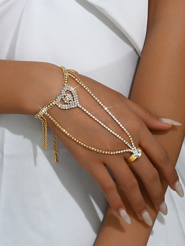 Γυναικείο βραχιόλι με αλυσίδα σε σχήμα καρδιάς και χρυσό στρας - κομψός συνδυασμός βραχιολιών με κρυστάλλινο δαχτυλίδι για πάρτι, γάμους και βραδινές περιστάσεις #14678549