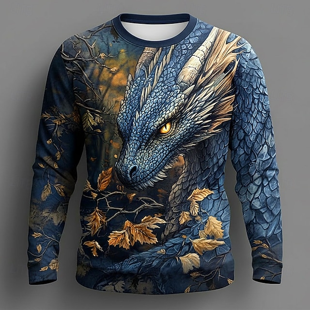 Ανδρικά Δράκος 3D Πουλόβερ Πουλόβερ Μακρυμάνικο Αθλητική μπλούζα Στρογγυλή Ψηλή Λαιμόκοψη Καθημερινό Πανκ & Γκόθικ Πάρτι Streetwear 3D Όλες οι εποχές