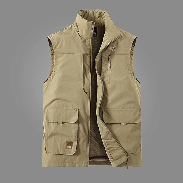 Ανδρικά Veste Gilet Γιλέκο ψαρέματος ΕΞΩΤΕΡΙΚΟΥ ΧΩΡΟΥ Καθημερινά Μοντέρνα Καθημερινό Άνοιξη Φθινόπωρο Κουμπώσου Τσέπη Νάιλον Άνετο Σκέτο Φερμουάρ Όρθιος Γιακάς Κανονικό Μαύρο Λευκό Χακί Πράσινο Χακί