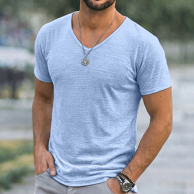 Ανδρικά Μπλουζάκι Κοντομάνικο μπλουζάκι Μπλουζάκι μπλουζάκι Μπλουζάκι από λινό Κοντομάνικο Λαιμόκοψη V Καλοκαίρι Άνοιξη Συμπαγές Χρώμα Σκέτο Pit Strip Κομψό στυλ street Στυλάτο Καθημερινό Σκέτο #15053514