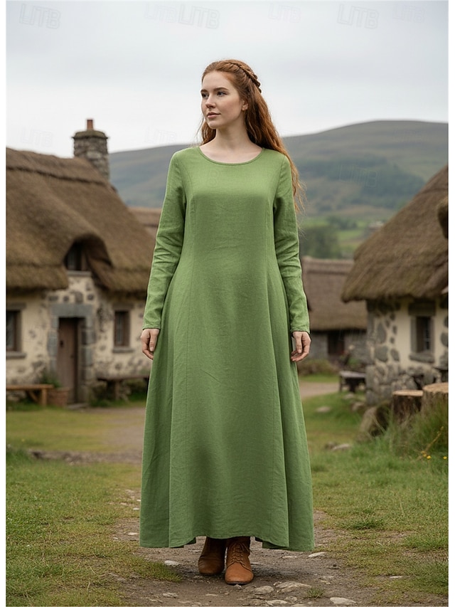Ρετρό / Βίντατζ Μεσαίωνα Αναγέννησης Μέχρι τον αστράγαλο Γυναικείο υποκάμισο Φόρεμα τουνίκ Κανονικό Βίκινγκ Ίσια Γραμμή Λαιμόκοψη V Φανταχτερή Φόρεμα Γυναικεία Βίκινγκ Απόκριες LARP Ρεν Φερ Ενηλίκων