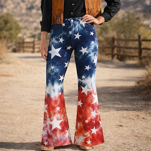 250ή Επέτειος ΗΠΑ Ρετρό / Βίντατζ Δεκαετία '70 Παντελόνια Παντελόνι με καμπάνα Χίπισσα Ντίσκο Ψηλή Μέση Φανταχτερή Φόρεμα Γυναικεία Μασκάρεμα 4η Ιουλίου Πάρτι Ημέρα της ανεξαρτησίας Ενηλίκων#15311443