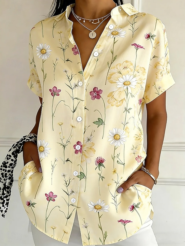Ύφασμα:Πολυεστέρας,Φύλο:Γυναικεία,Τύπος Μπλούζας:Πουκάμισο,Σχέδιο:Στάμπα,Κουμπιά,Περίσταση:Καθημερινά,Στυλ:Στυλάτο,Βίντατζ,Καθημερινό,Μοντέρνα,Κατηγορία:Μπλούζα,Είδος εφαρμογής:Κανονικό,Λαιμόκοψη:Κολάρο Πουκαμίσου,Μάκρος Μανικιού:Κοντομάνικο,Ελαστικότητα:Ανελαστικό,Φροντίδα:Πλένεται,Πλύσιμο στο χέρι,Πλύσιμο στο πλυντήριο,Μάκρος Μπλούζας:Κανονικά μπλουζάκια,Μοτίβο:Γραφική,Φλοράλ,Εποχή:Καλοκαίρι,Άνοιξη,