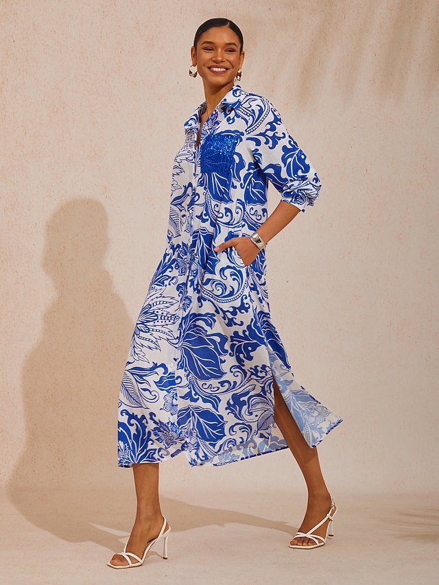 Γυναικεία Λινό από ψεύτικο βαμβάκι Φόρεμα πουκαμίσα Ενεργό Βασικό Καθημερινά Κανονικό Συμπαγές Χρώμα Μακρυμάνικο Κολάρο Πουκαμίσου Θαλασσί Μαύρο Λευκό Κίτρινο Καλοκαίρι