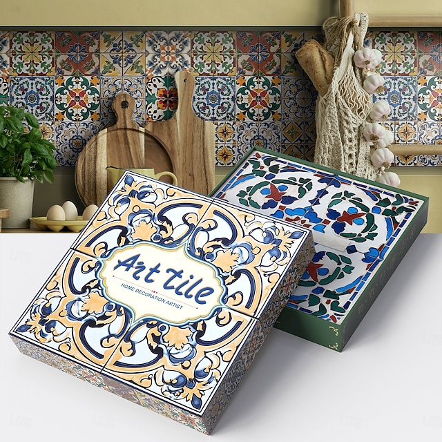 12 τεμάχια αυτοκόλλητα πλακιδίων τοίχου 3d peel stick 6x6 in, παχύ μωσαϊκό κρυστάλλου αφρού pe, αδιάβροχο backsplash για κουζίνα, μπάνιο &διακόσμηση σπιτιού, μεταλλικό κουτί δώρου με πάνελ τοίχου #15803727