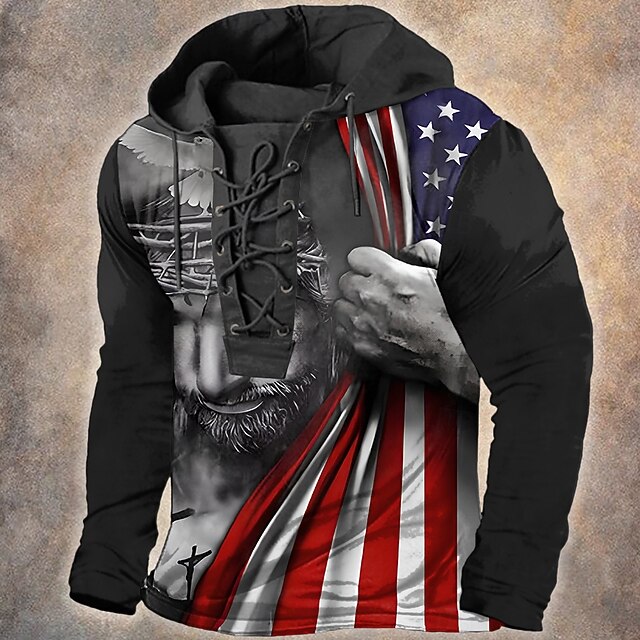4η Ιουλίου 2026 250η Ημέρα Μνήμης Ανδρική Streetwear Σχεδιαστής Αμερικανική Σημαία Κωδικοποιημένο Μακρυμάνικο Hoodie Sweatshirt Καθημερινό Δρόμο #15883105
