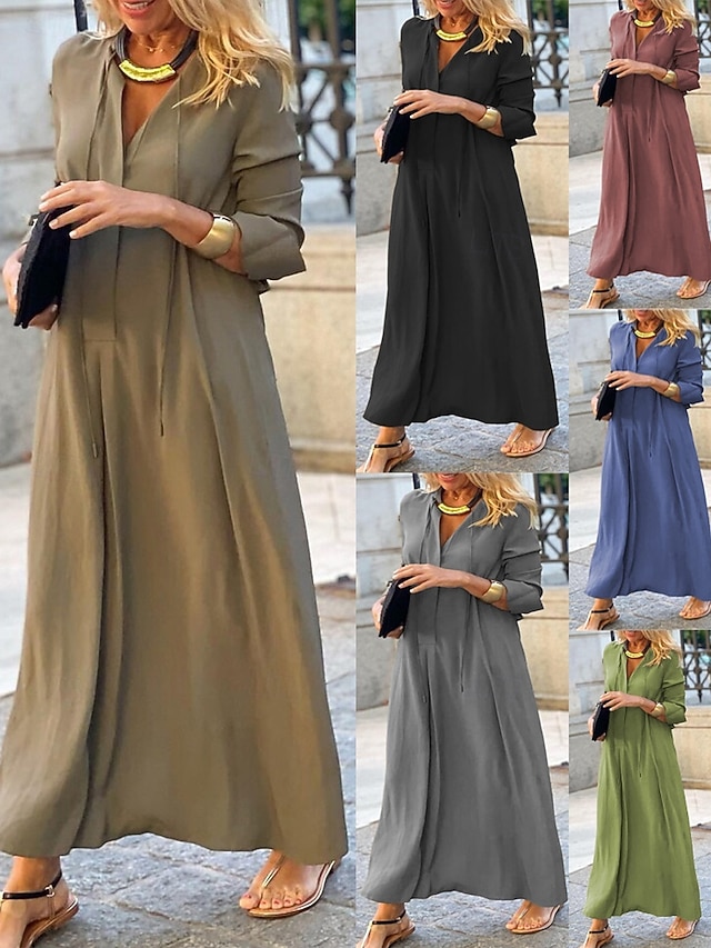 Γυναικεία Μακρύ φόρεμα Φόρεμα πουκαμίσα Καθημερινό φόρεμα Κομψό Μοντέρνα ΕΞΩΤΕΡΙΚΟΥ ΧΩΡΟΥ Διακοπές Εξόδου Χαλαρή Εφαρμογή Σκέτο Μακρυμάνικο Λαιμόκοψη V Μαύρο Ρουμπίνι Βαθυγάλαζο Καφέ Άνοιξη Φθινόπωρο #16975578