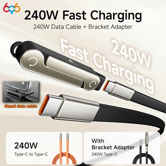 Καλώδιο φόρτισης υψηλής ισχύος 240w τύπου C με βάση στήριξης, σχεδιασμός 2 σε 1 για φόρτιση &Προβολή hands-free, γρήγορη μεταφορά 480mbps, υλικό υγρής σιλικόνης, κέλυφος από κράμα ψευδαργύρου, #17208521